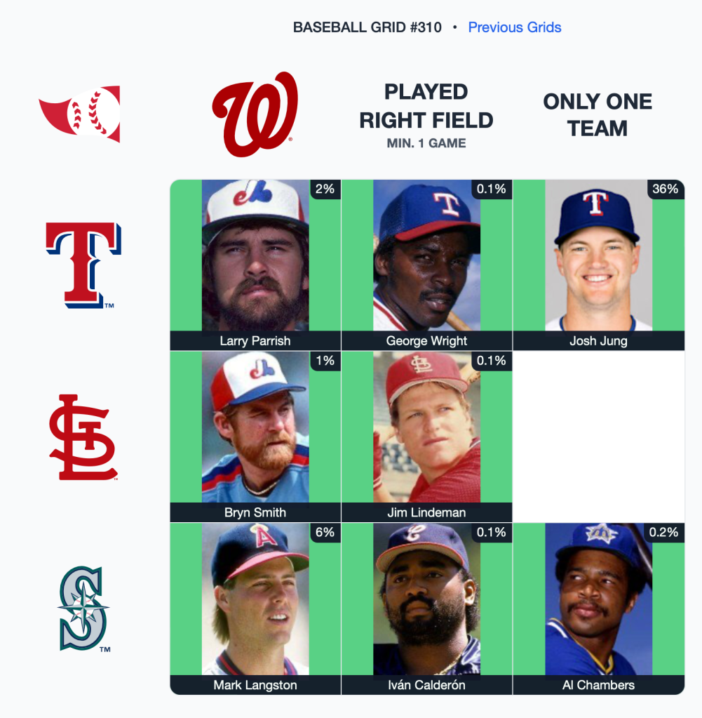 ⚾️ Immaculate Grid 310 8/9: Rarity: 144