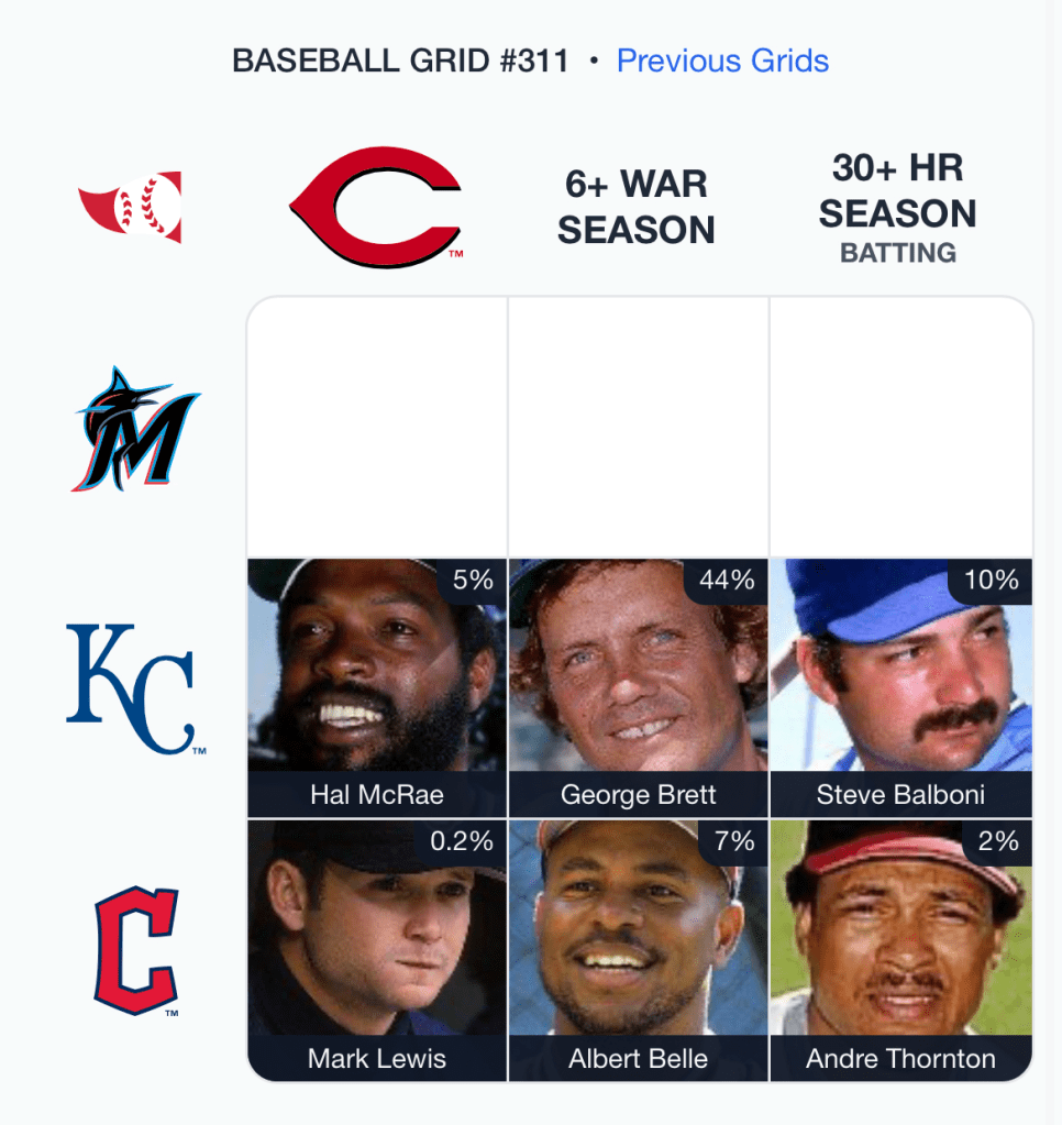 ⚾️ Immaculate Grid 311 6/9: Rarity: 368