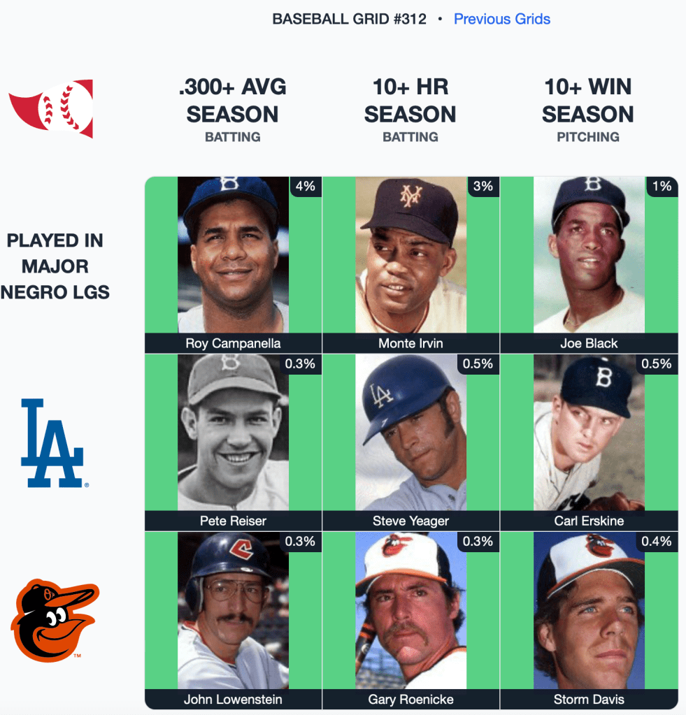 ⚾️ Immaculate Grid 312 9/9: Rarity: 10