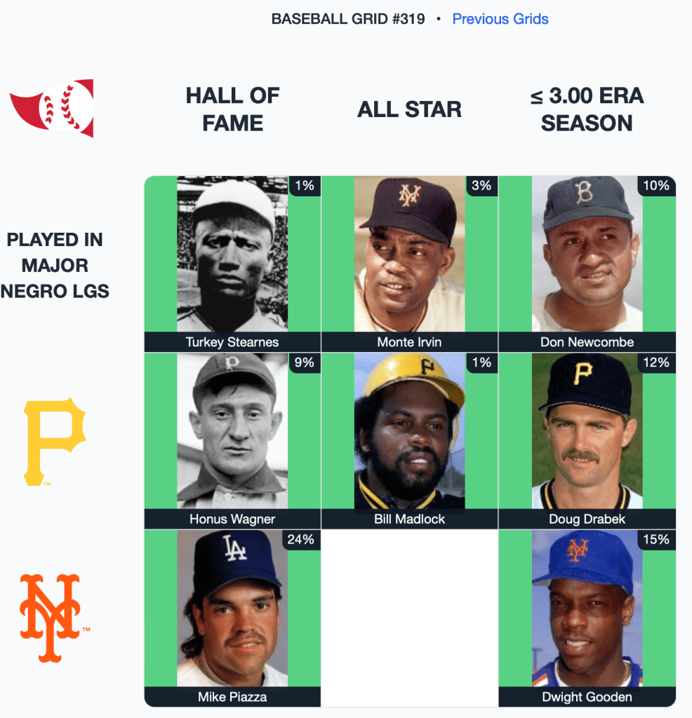 ⚾️ Immaculate Grid 319 8/9: Rarity: 176