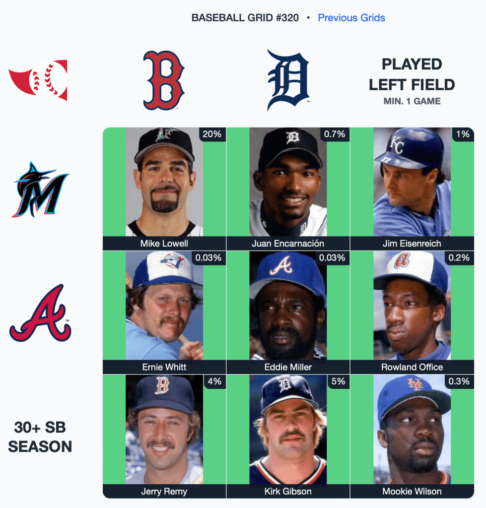 ⚾️ Immaculate Grid 320 9/9: Rarity: 31