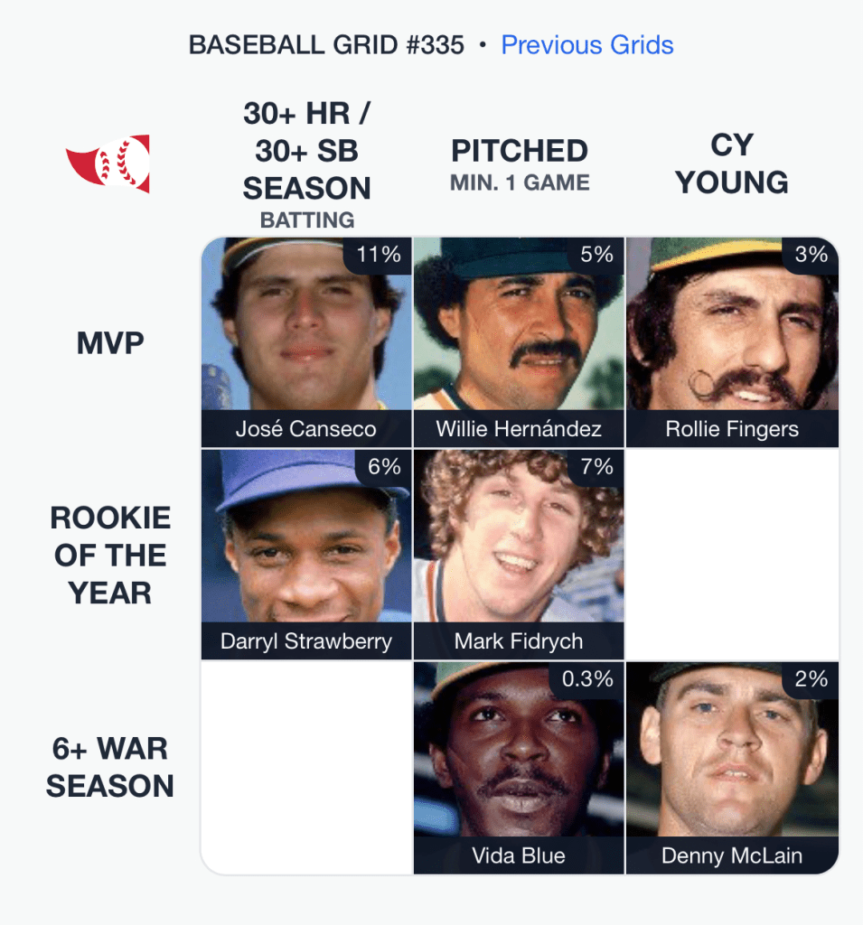 ⚾️ Immaculate Grid 335 7/9 — Rarity: 235