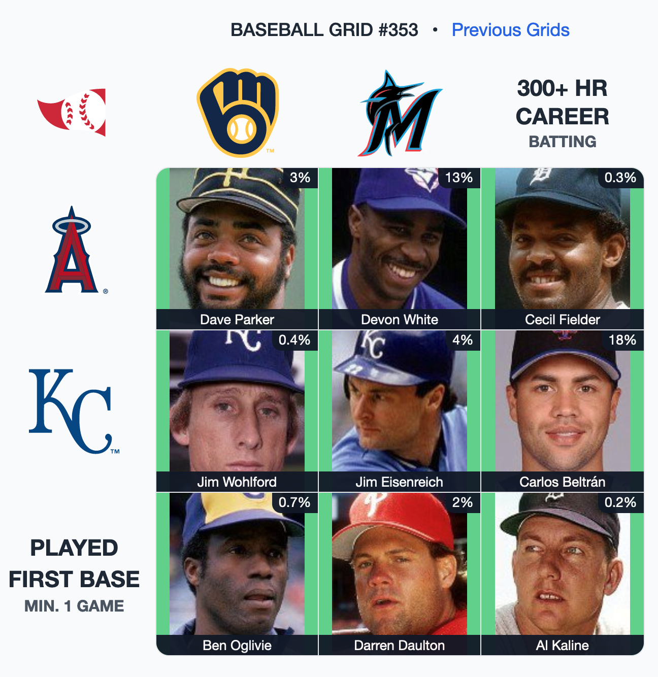 ⚾️ Immaculate Grid 353 9/9 – Rarity: 40