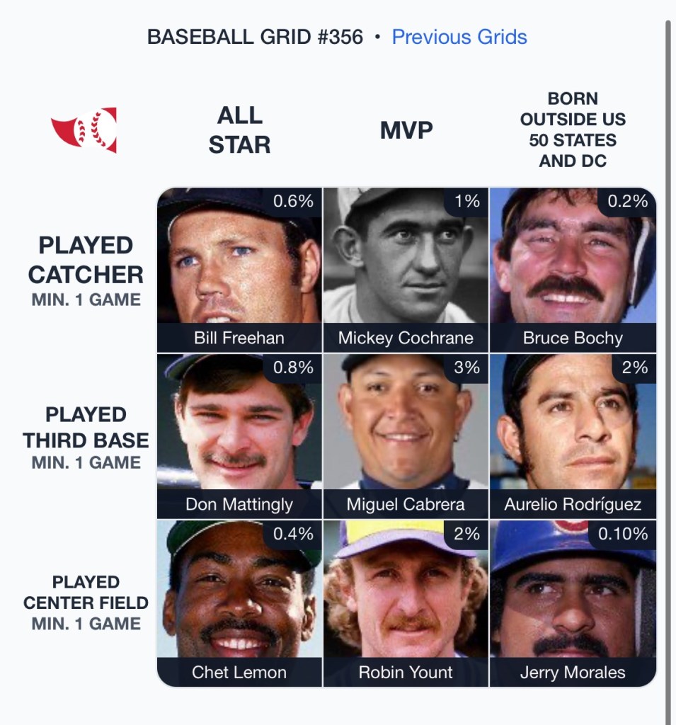 ⚾️ Immaculate Grid 356 9/9 – Rarity: 11