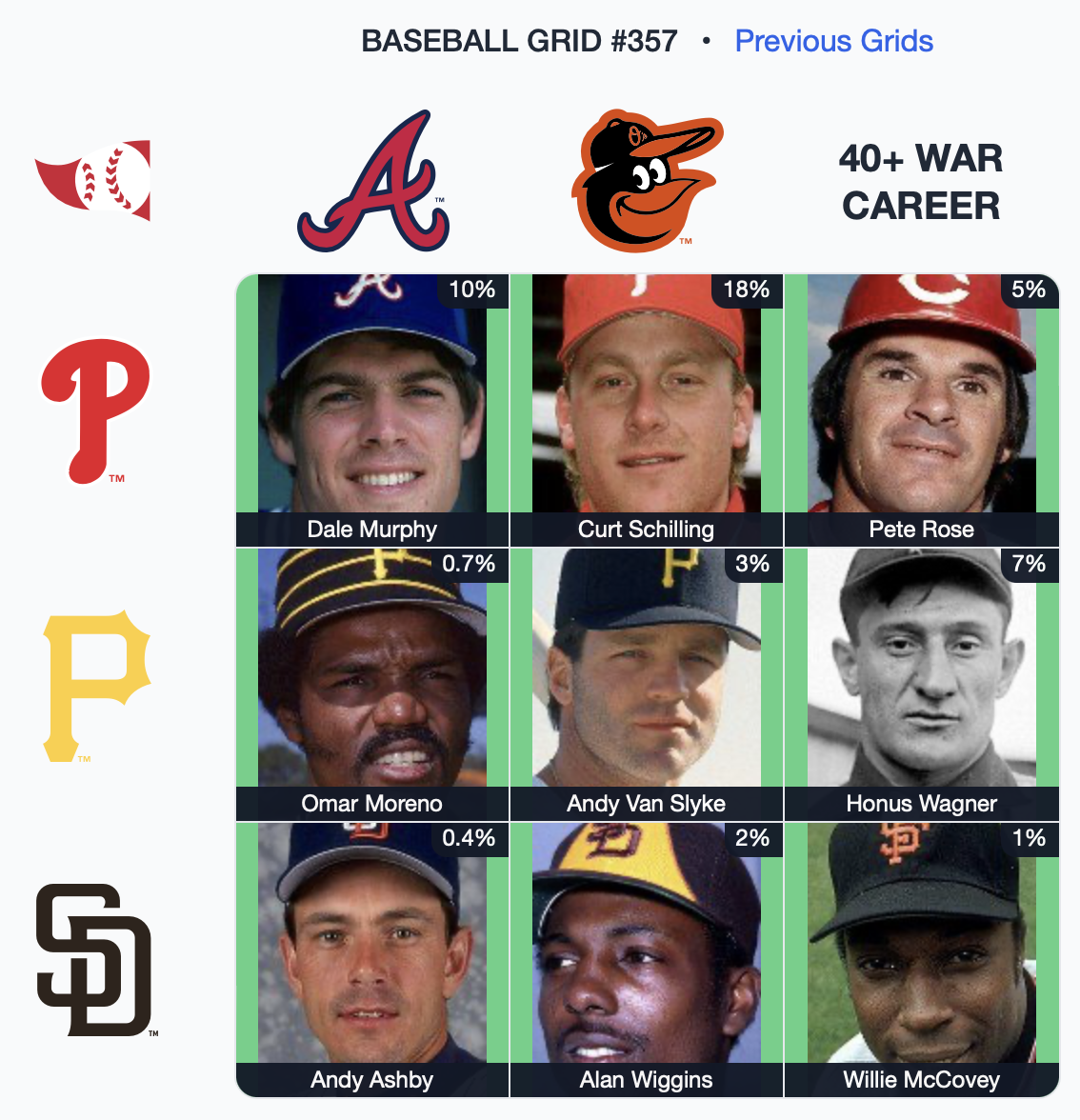 ⚾️ Immaculate Grid 357 9/9 – Rarity: 48