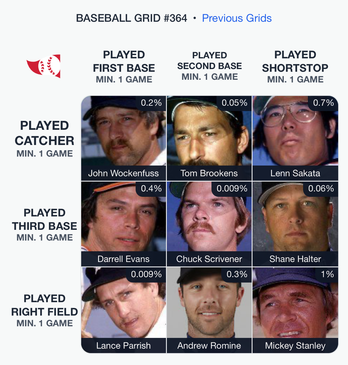 ⚾️ Immaculate Grid 364 9/9 – Rarity: 3