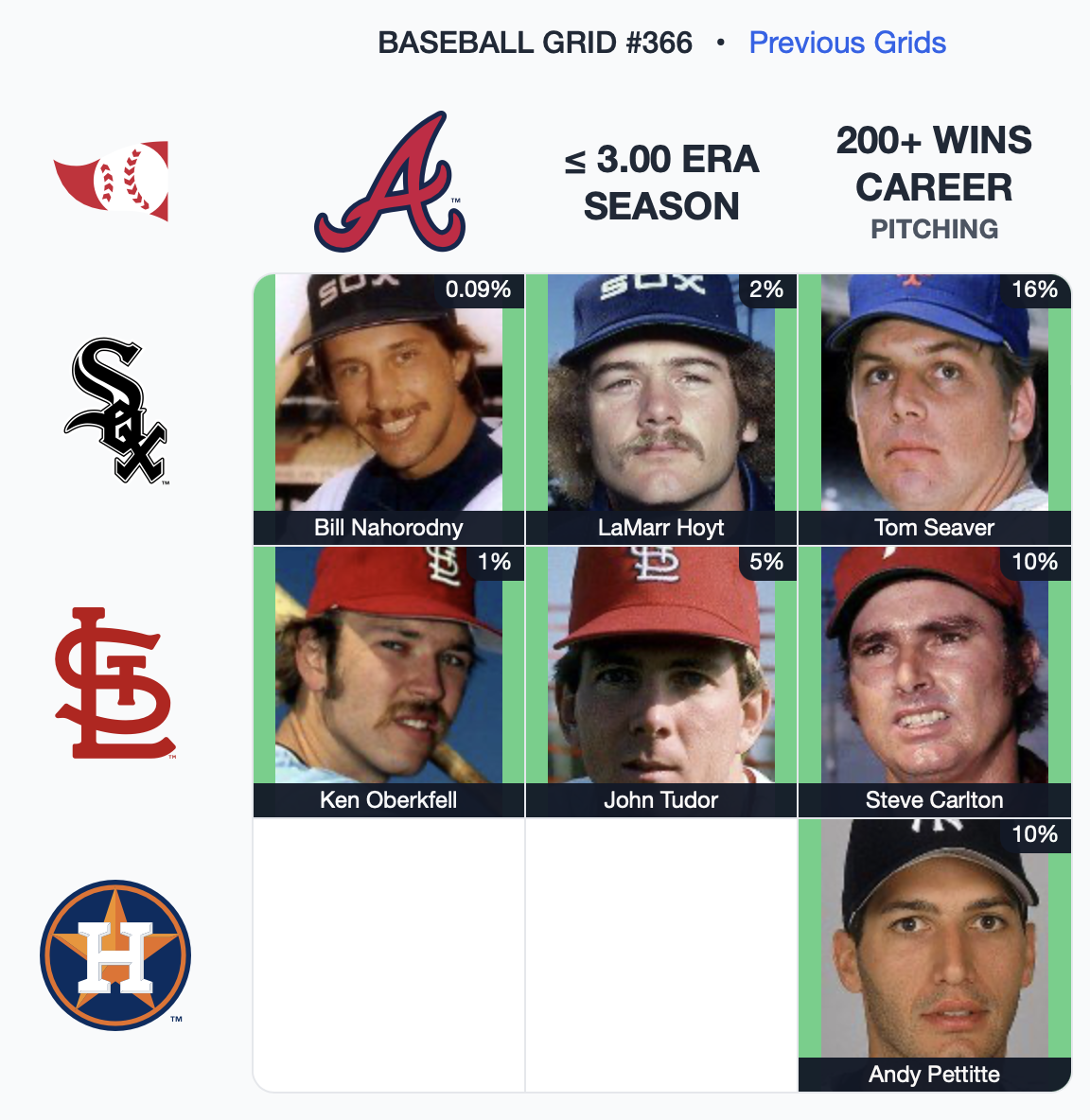 ⚾️ Immaculate Grid 366 7/9 — Rarity: 244