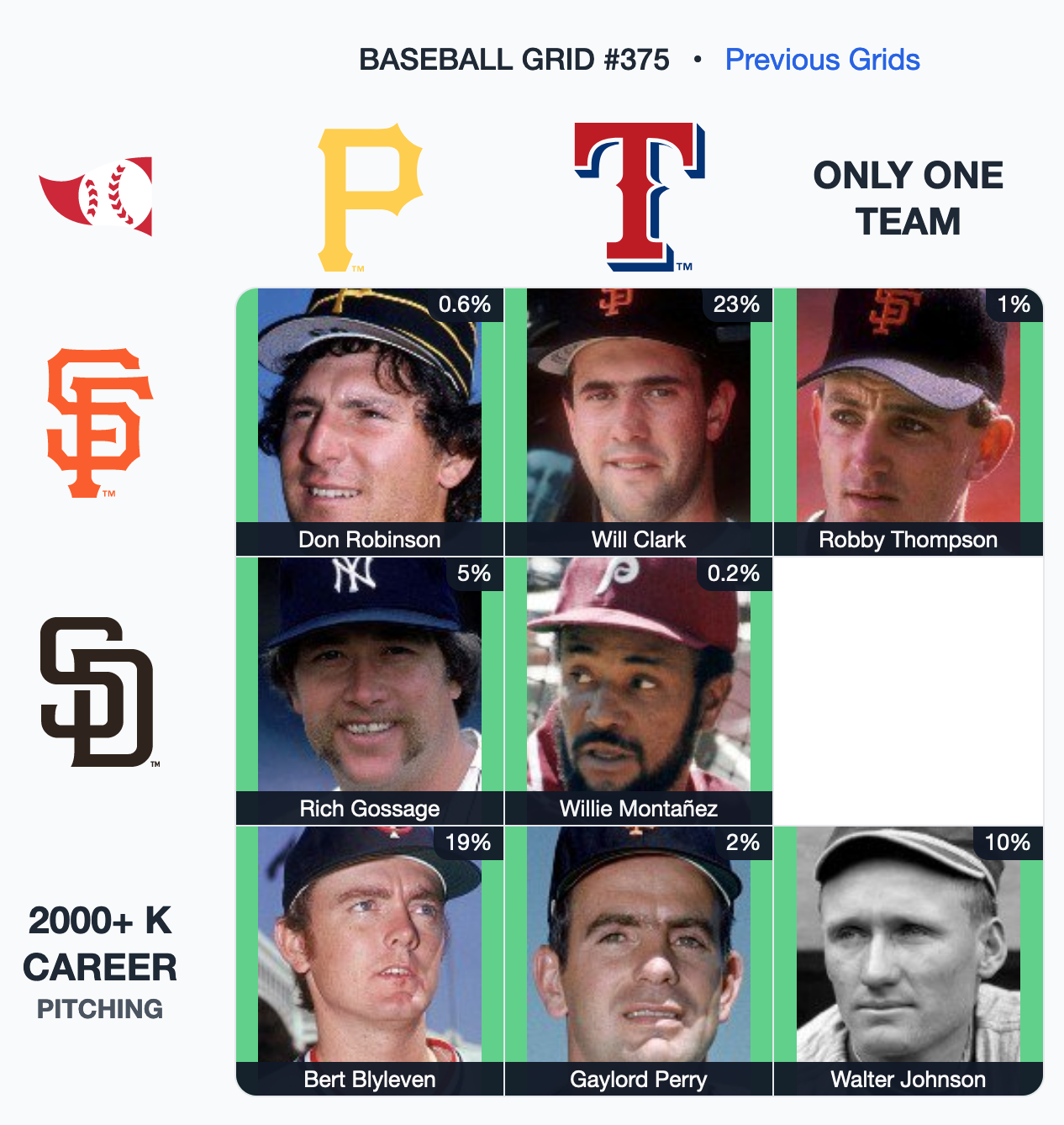 ⚾️ Immaculate Grid 375 8/9 — Rarity: 161