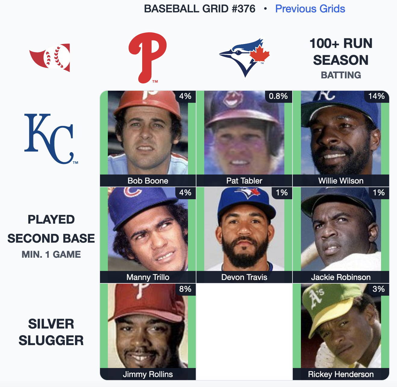 ⚾️ Immaculate Grid 376 8/9 – Rarity: 137