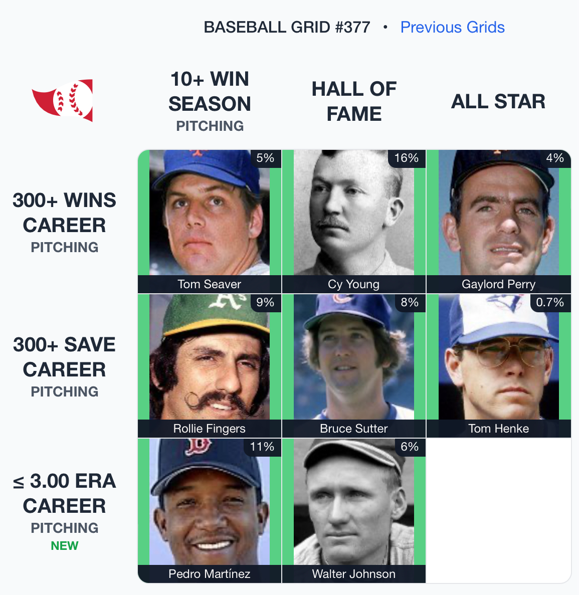 ⚾️ Immaculate Grid 377 8/9 – Rarity: 159