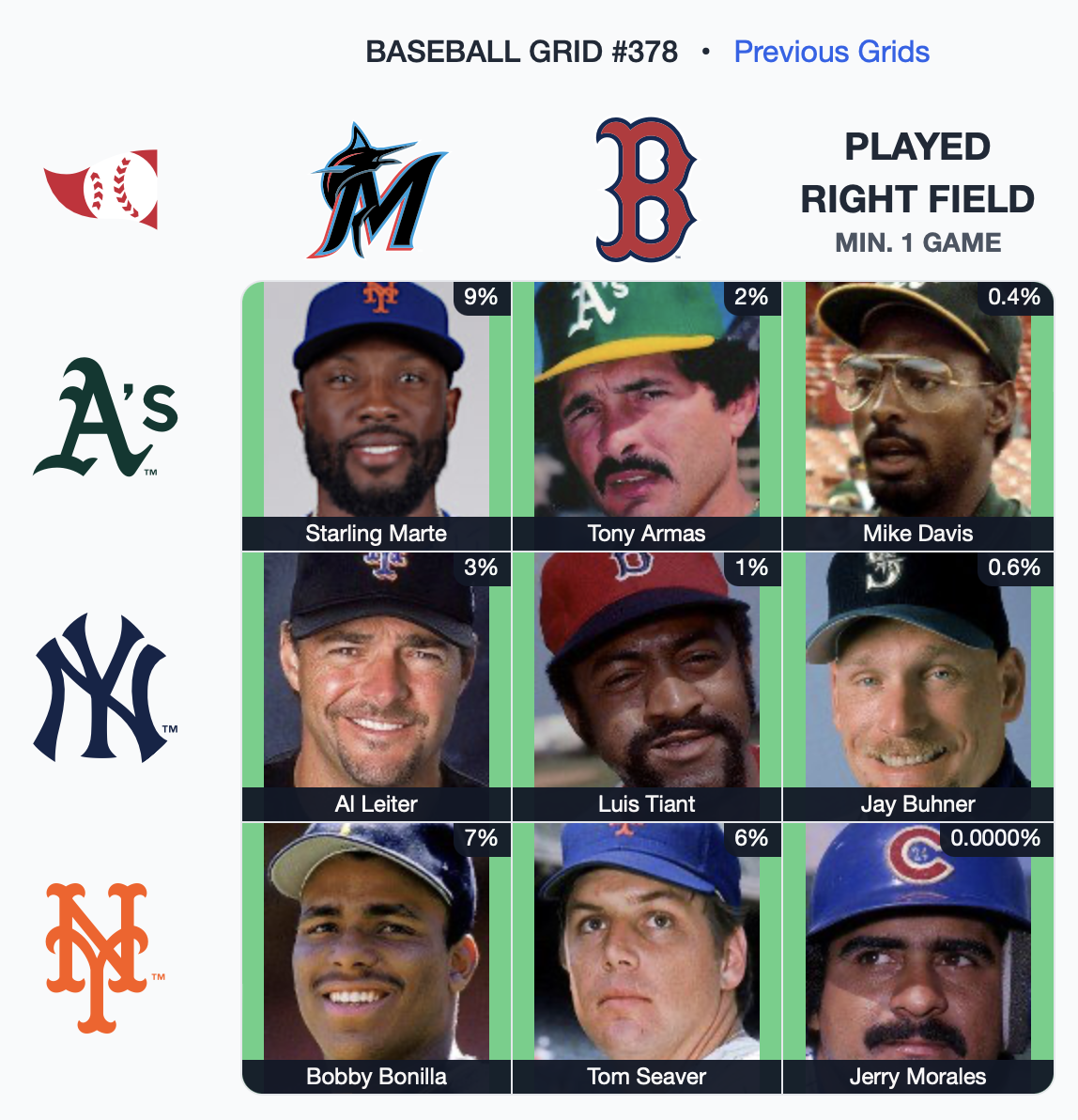 ⚾️ Immaculate Grid 378 9/9 – Rarity: 29