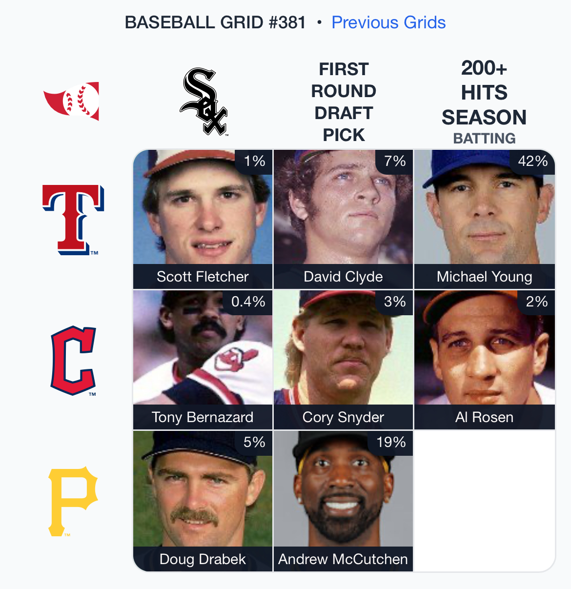 ⚾️ Immaculate Grid 381 8/9 — Rarity: 179