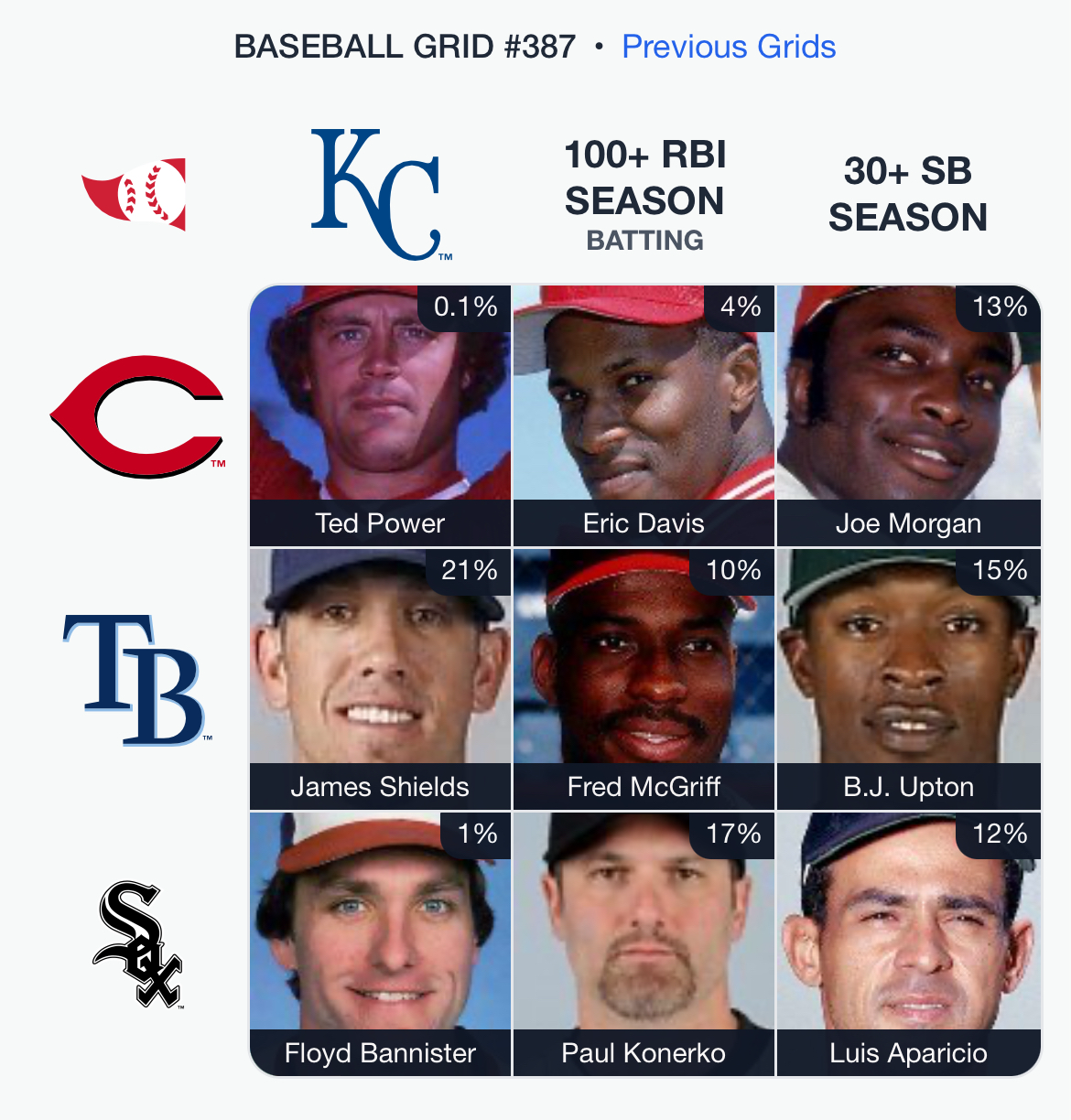 ⚾️ Immaculate Grid 387 9/9 — Rarity: 92