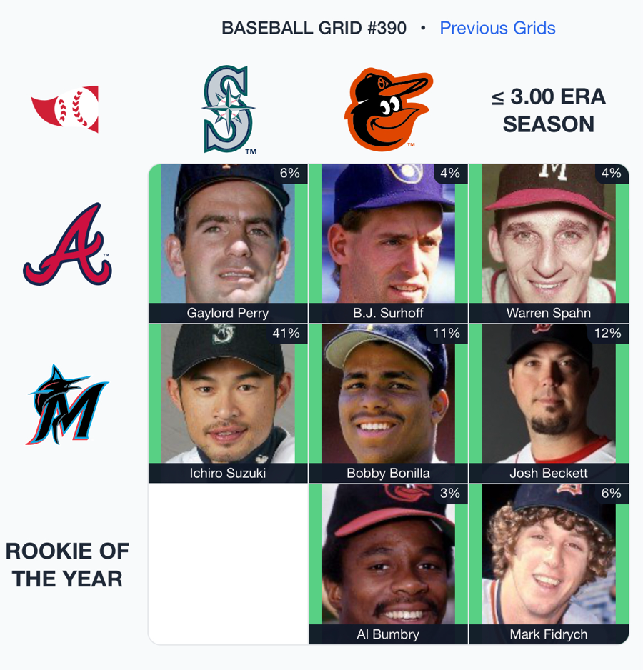⚾️ Immaculate Grid 390 8/9 – Rarity: 189