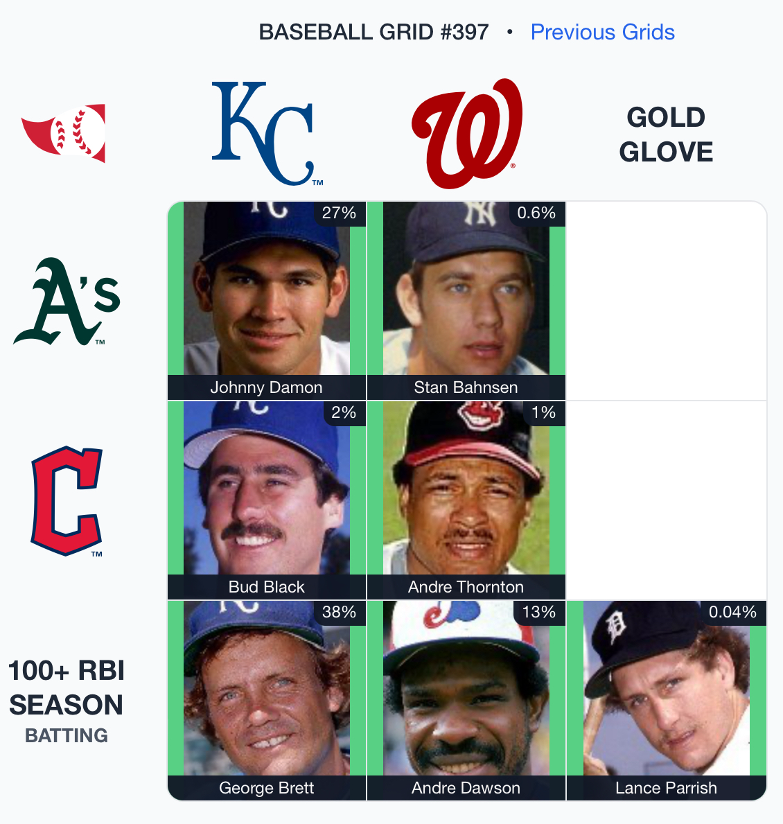 ⚾️ Immaculate Grid #397 7/9 — Rarity: 281