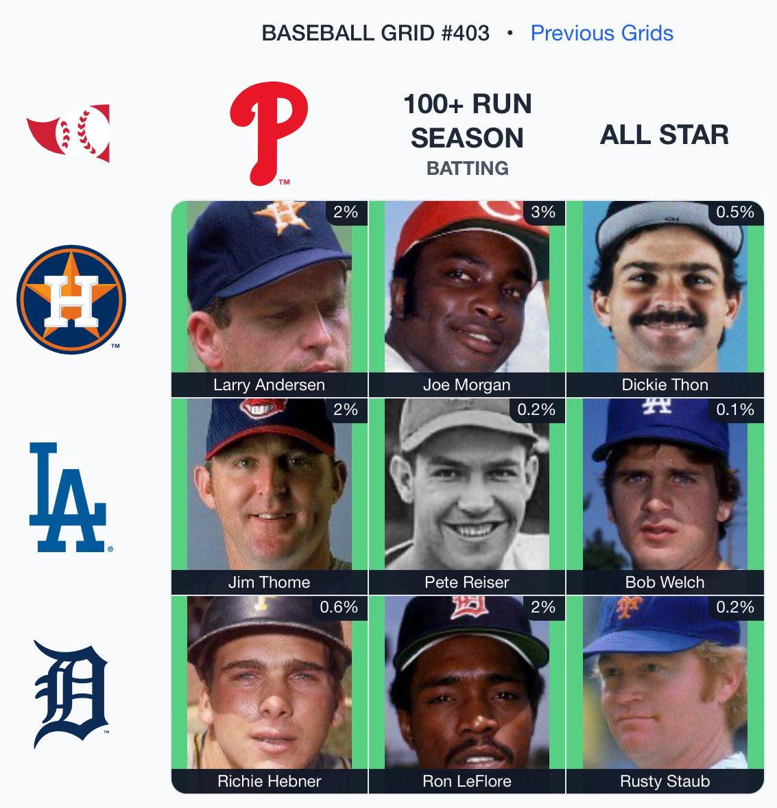 ⚾️ Immaculate Grid 403 9/9 – Rarity: 11
