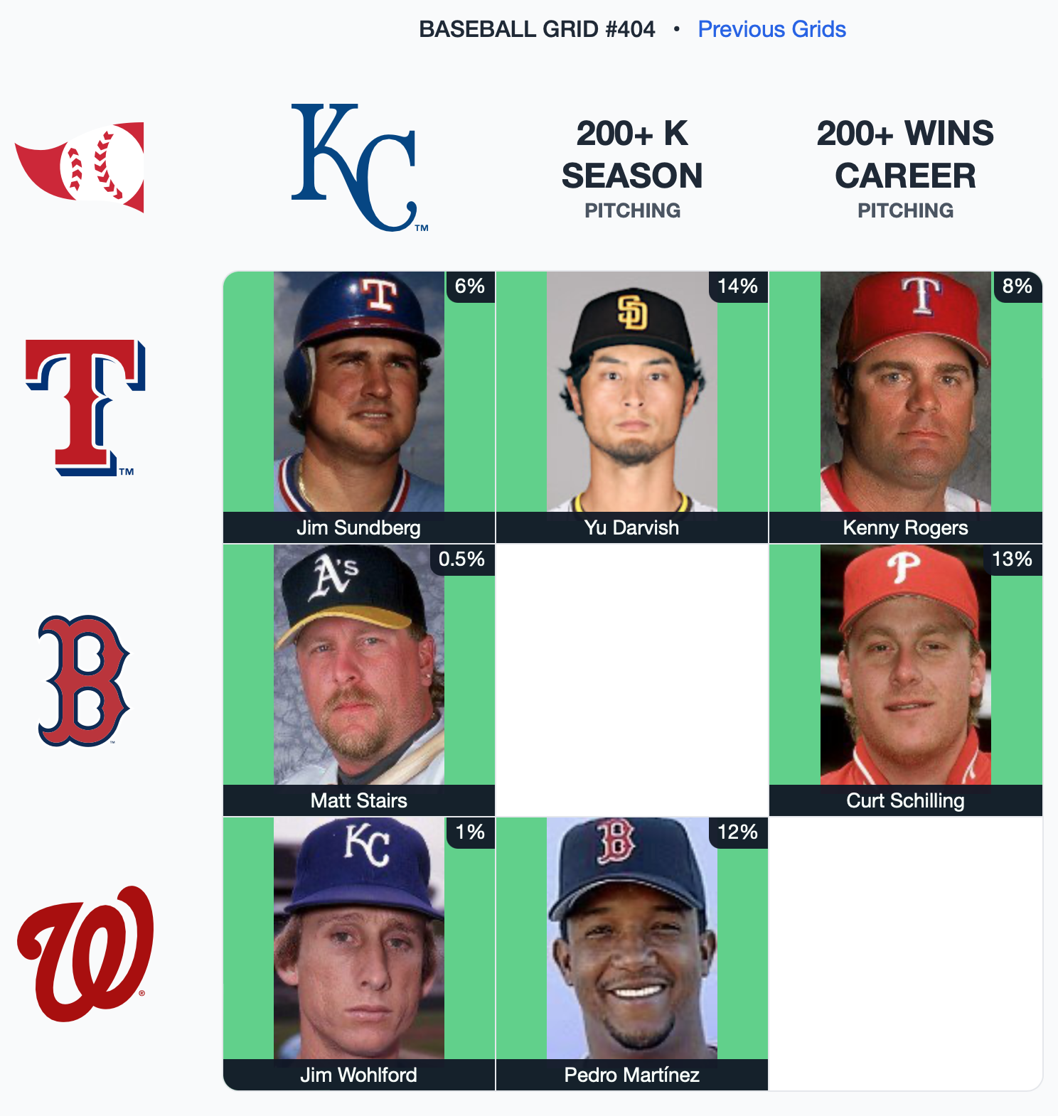 ⚾️ Immaculate Grid 404 7/9 — Rarity: 254