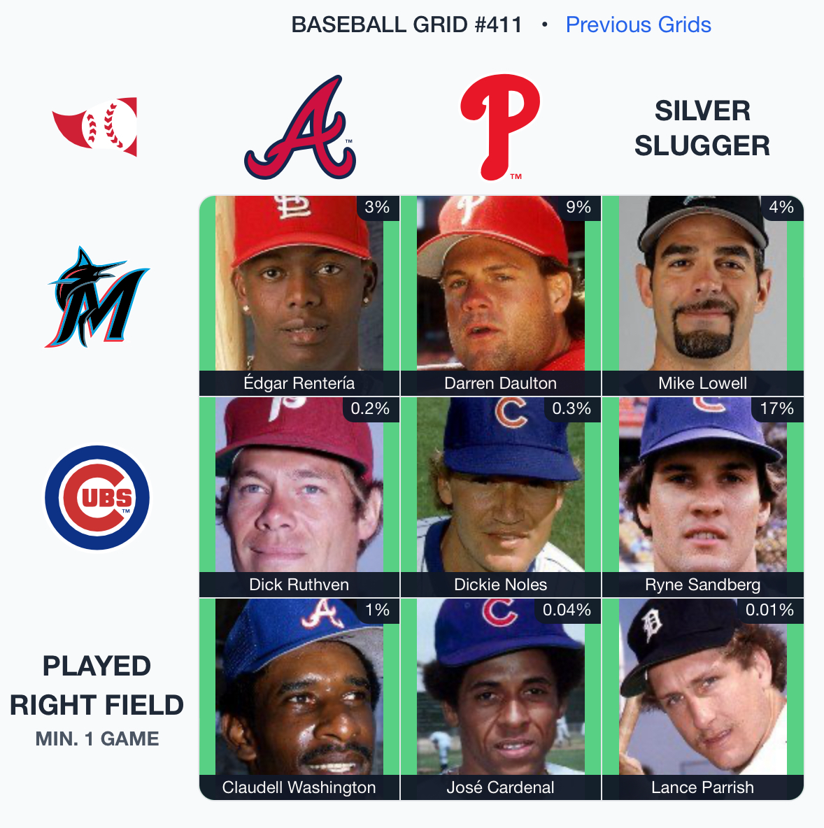 ⚾️ Immaculate Grid 411 9/9 Rarity: 36