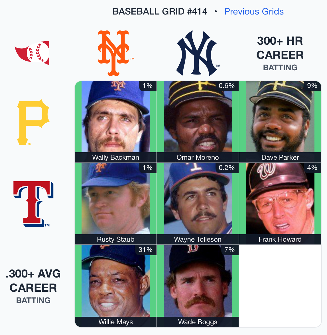 ⚾️ Immaculate Grid 414 8/9: Rarity: 153