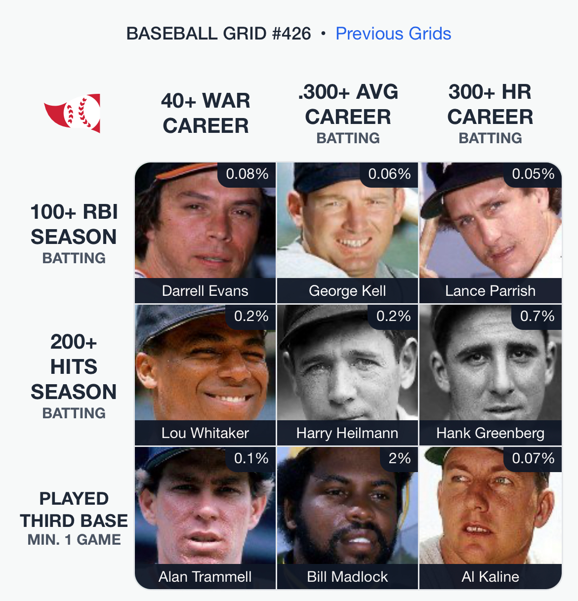 ⚾️ Immaculate Grid 426 9/9: Rarity: 4