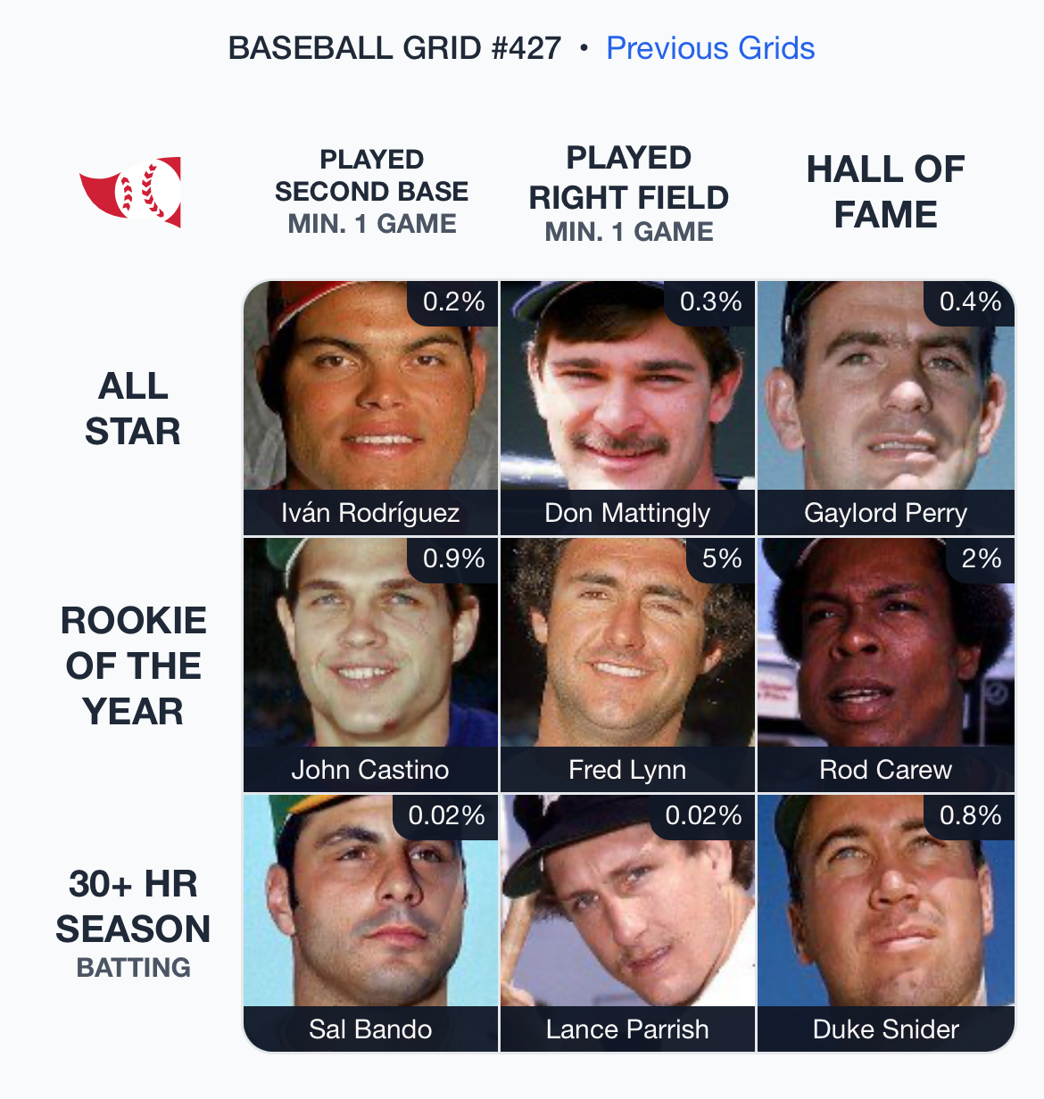 ⚾️ Immaculate Grid 427 9/9: Rarity: 9