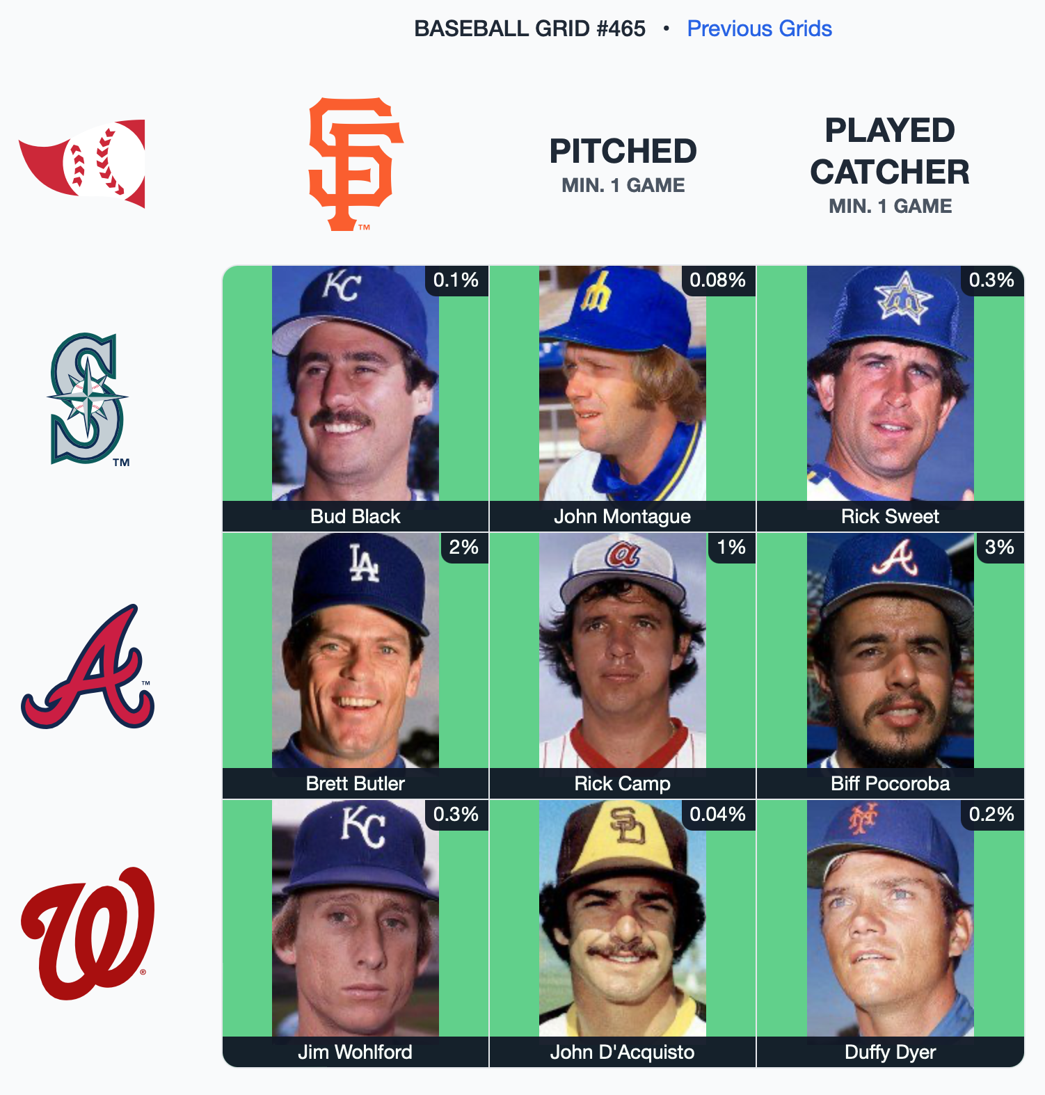 ⚾️ Immaculate Grid 465 9/9: Rarity: 7