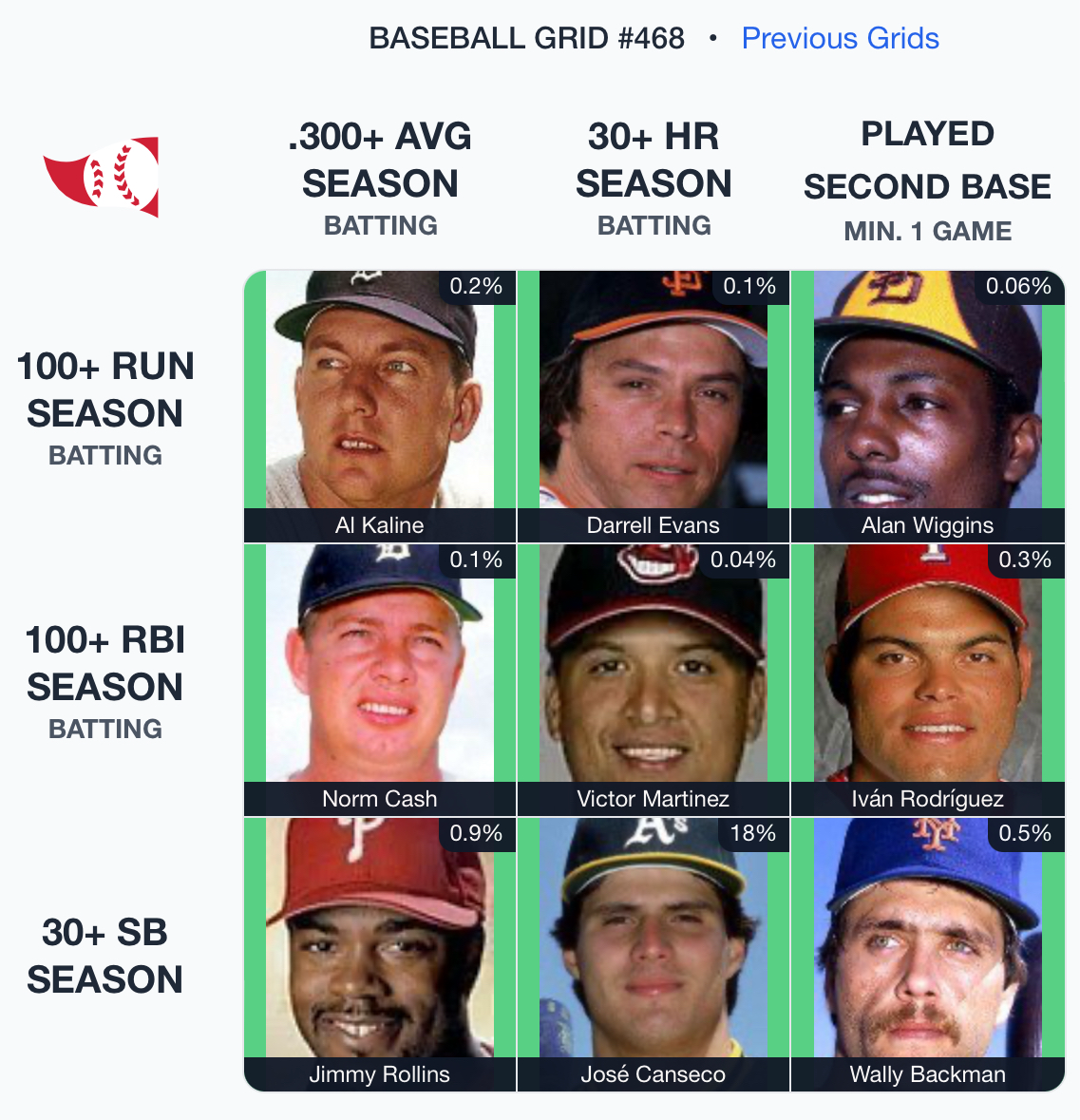 ⚾️ Immaculate Grid 468 9/9: Rarity: 20