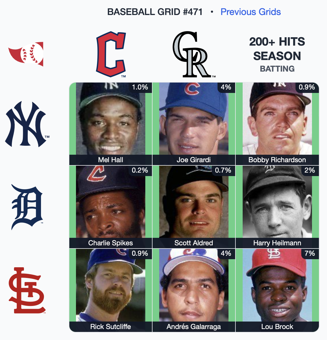 ⚾️ Immaculate Grid 471 9/9: Rarity: 21