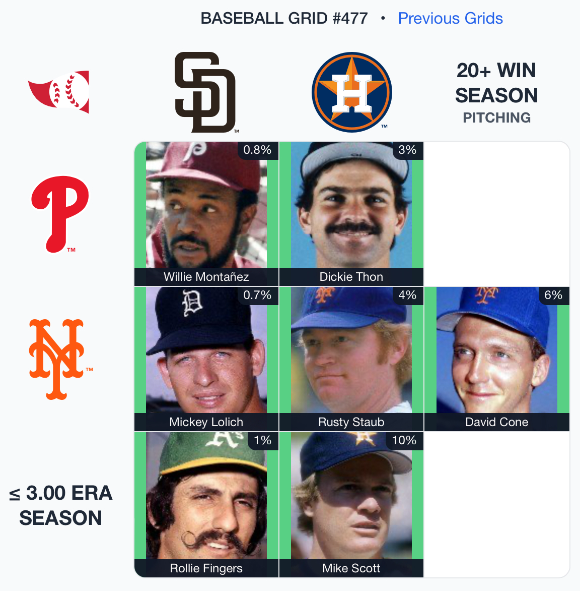 ⚾️ Immaculate Grid 477 7/9: Rarity: 226