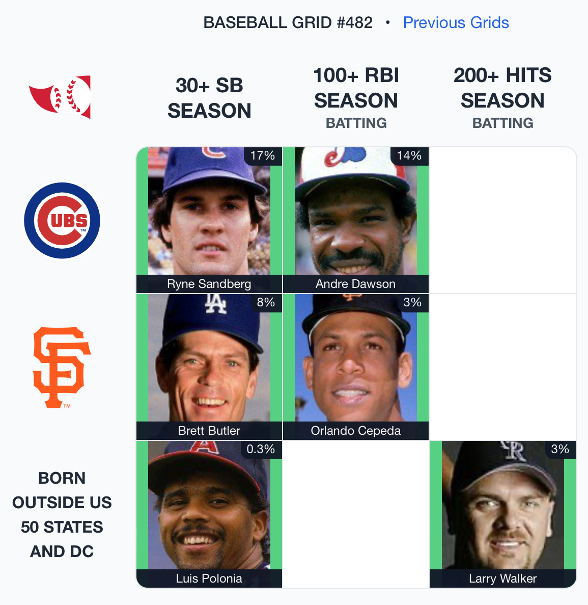 ⚾️ Immaculate Grid 82 6/9 — Rarity: 345
