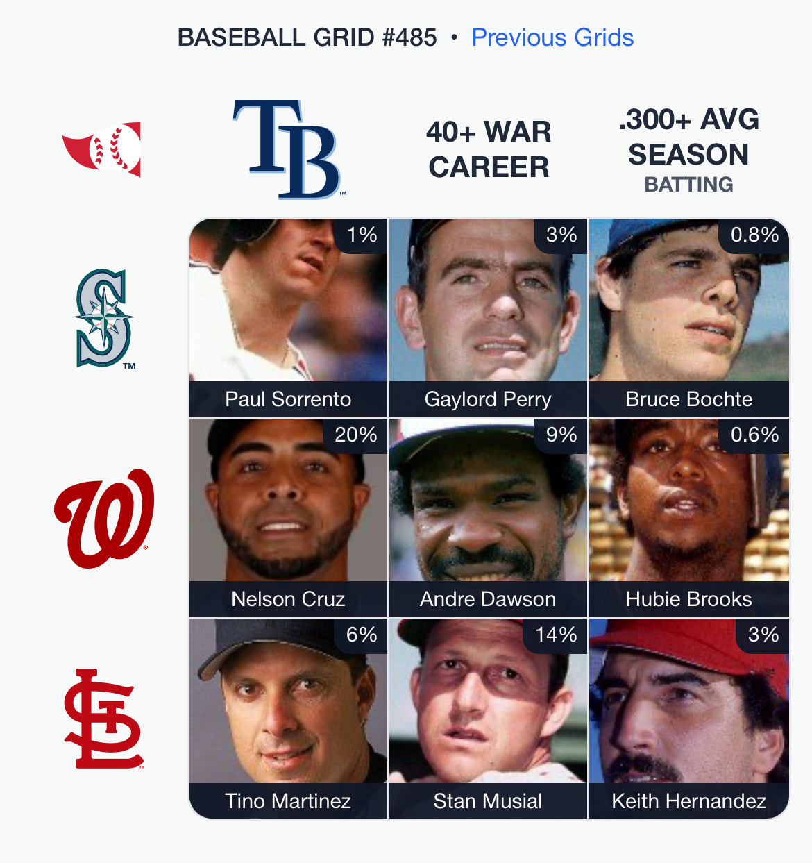 ⚾️ Immaculate Grid 485 9/9 — Rarity: 58