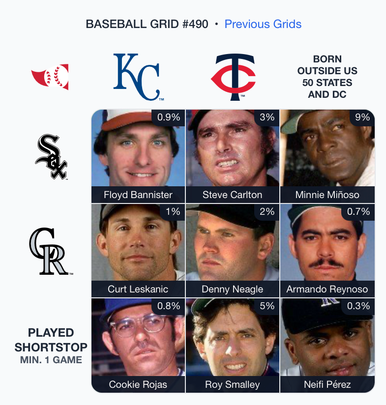 ⚾️ Immaculate Grid 490 9/9 — Rarity: 23