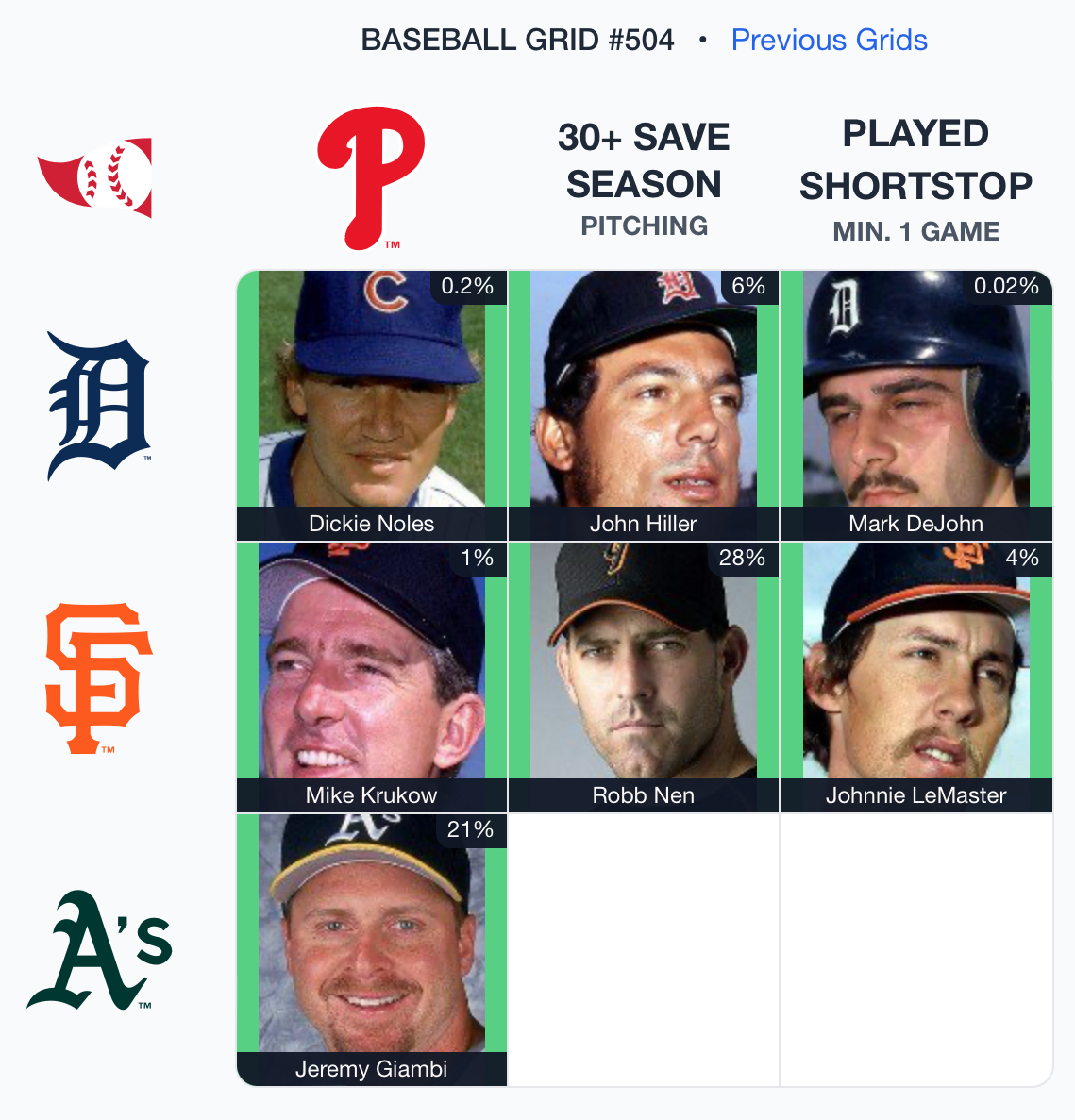 ⚾️ Immaculate Grid 504 7/9 — Rarity: 260