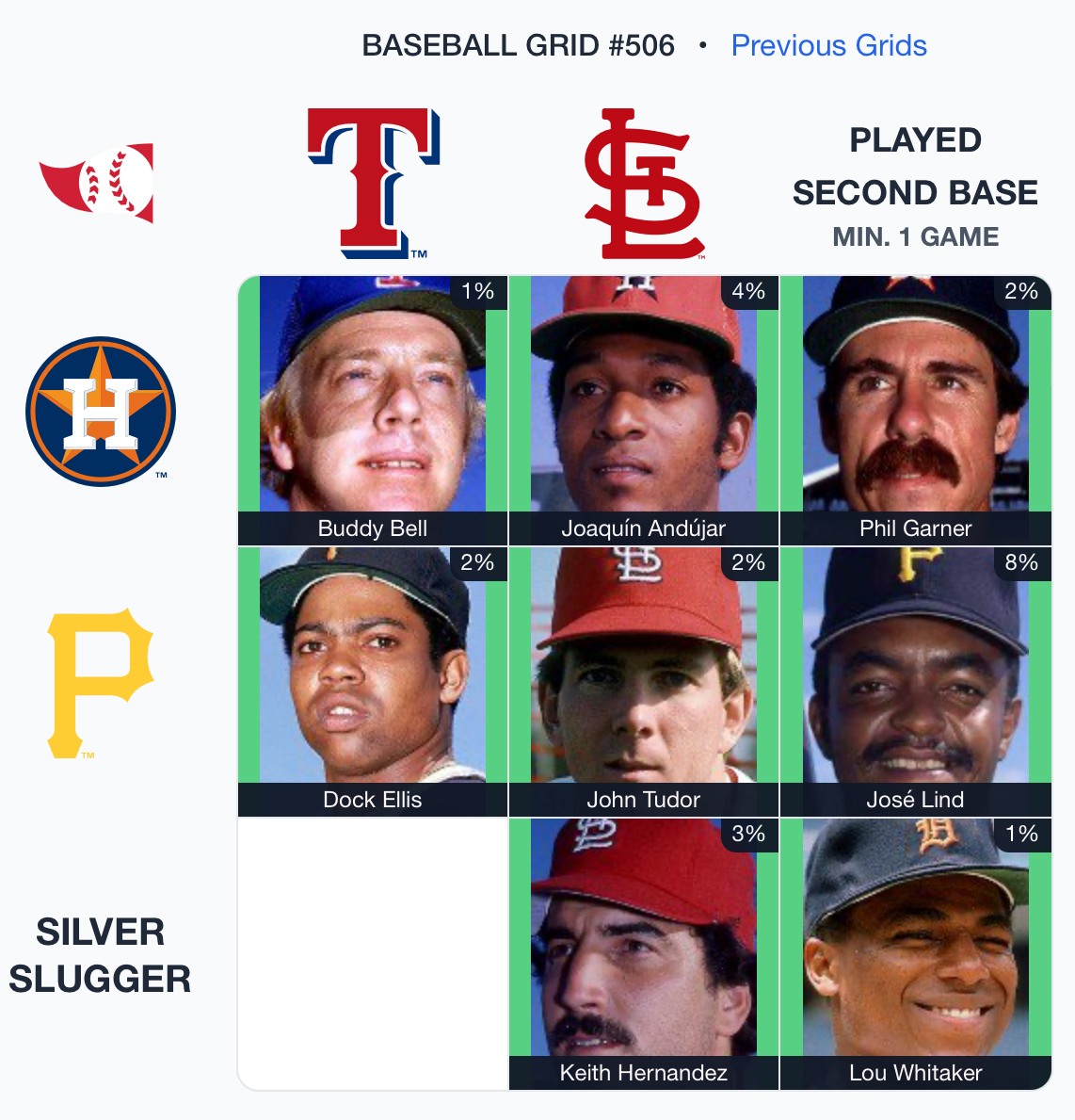 ⚾️ Immaculate Grid 506 8/9 — Rarity: 123
