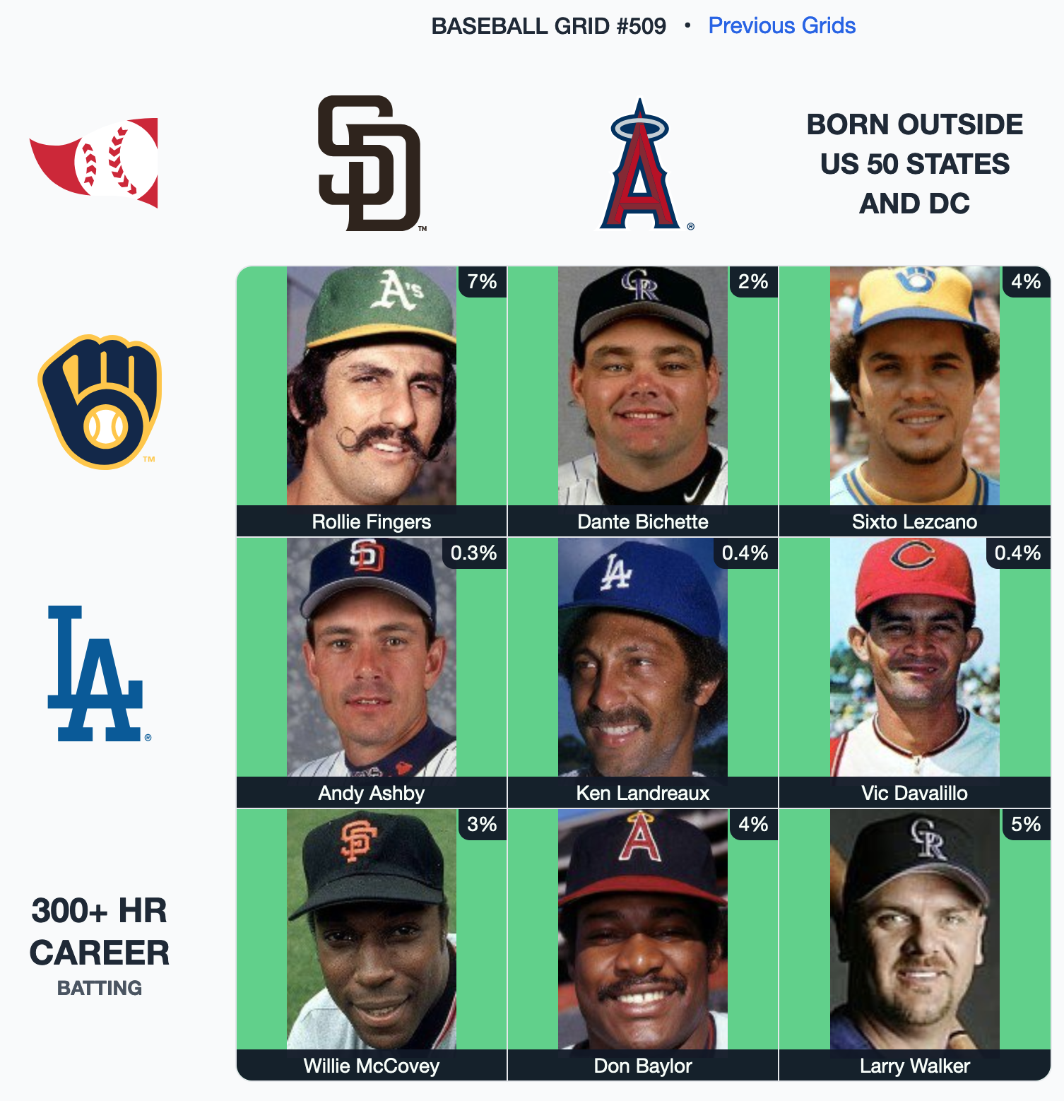 ⚾️ Immaculate Grid 509 9/9 — Rarity: 26