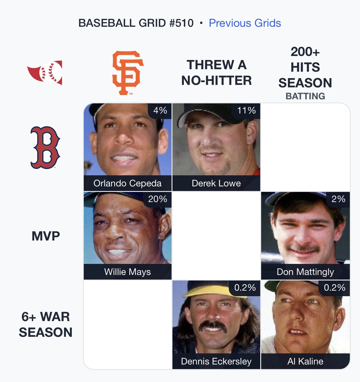 ⚾️ Immaculate Grid 510 6/9 — Rarity: 338