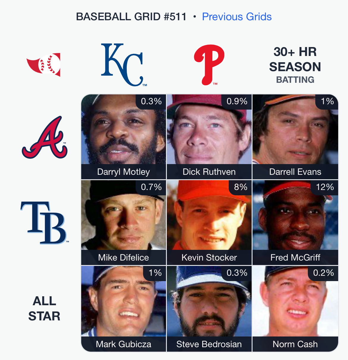 ⚾️ Immaculate Grid 512 9/9 – Rarity: 7