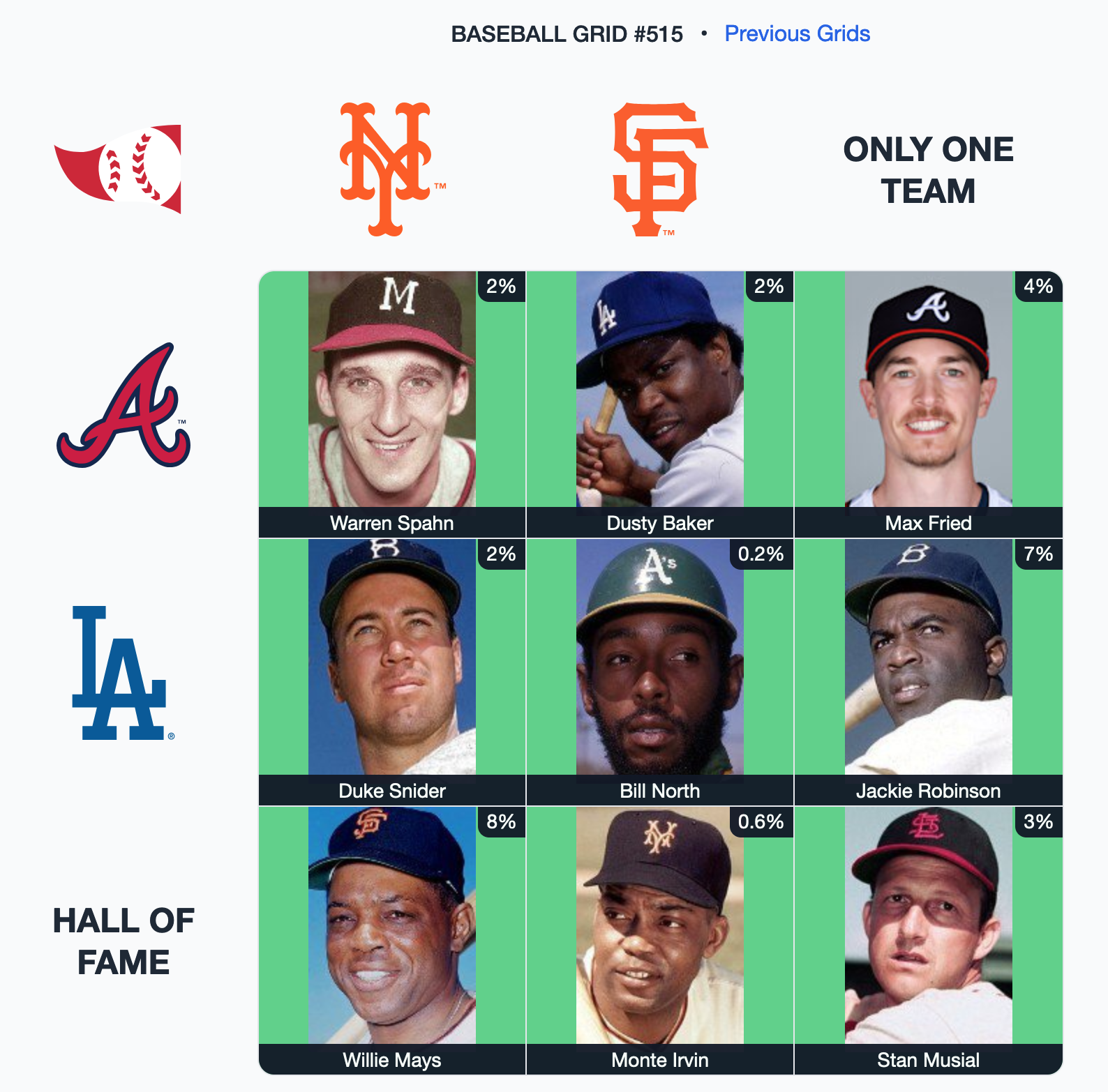 ⚾️ Immaculate Grid 515: 9/9 — Rarity: 28