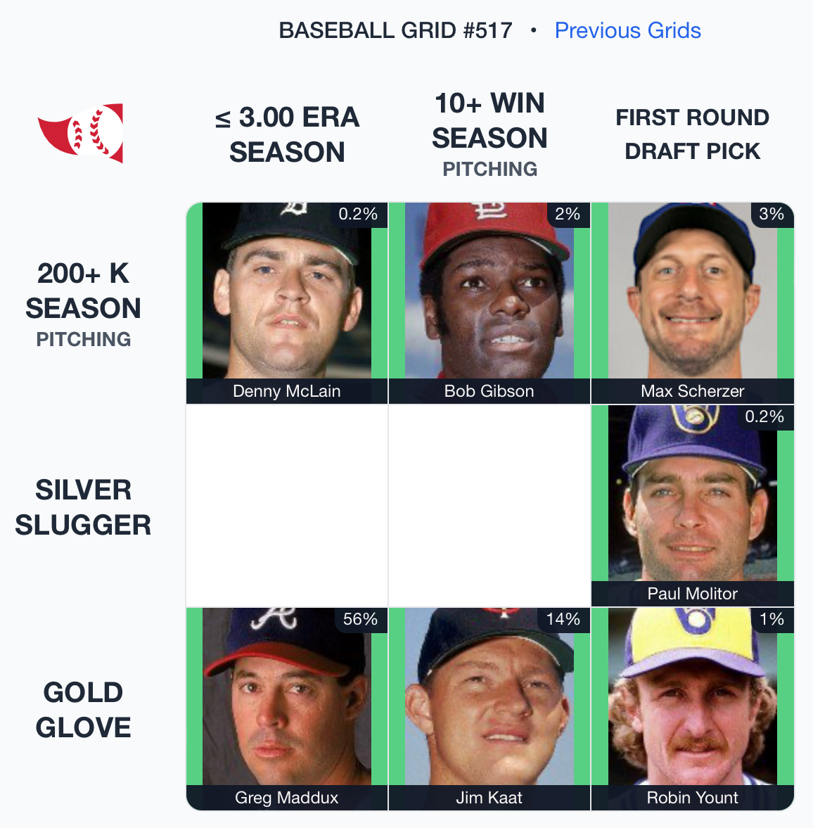 ⚾️ Immaculate Grid 517 7/9 — Rarity: 276