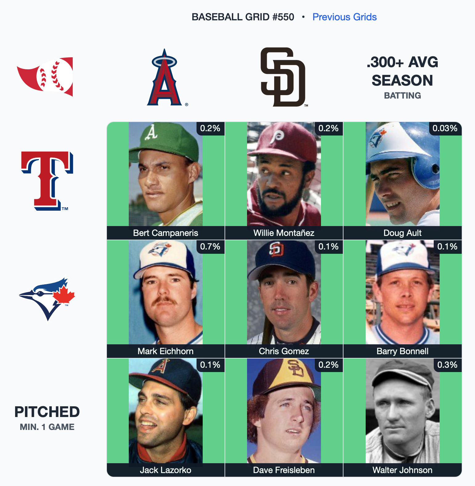 ⚾️ Immaculate Grid 550: 9/9 — Rarity: 2!