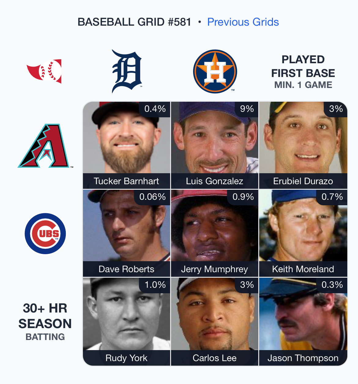 ⚾️ Immaculate Grid #581 — Rarity: 18