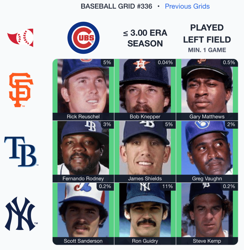 ⚾️ Immaculate Grid 336 9/9 — Rarity: 28